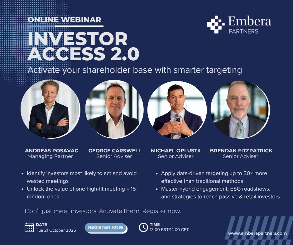 Please note: Participation is restricted to corporate issuers and relevant professionals. We reserve the right to decline registrations.